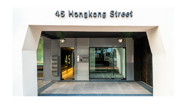 45 Hong Kong Street is an Art Deco Style Shophouse located within the Boat Quay Conservation Area. The Original Architecture reflects the Art Deco Style where design was influenced by modern advances in technology, industrialization and post war economy. Due to the embracement of the wonders of Machine Age, traditional organic ornaments were discarded for more streamlined designs, curved corners and strong horizontal lines together with geometric shapes, zigzag roofs and flagpoles.