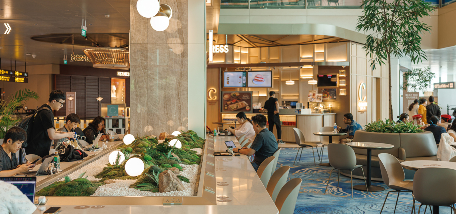 At TA.LE, we believe good design combines function with storytelling. Here, the story is one of Singapore as a Garden City rooted in nature, even in the heart of a bustling terminal.