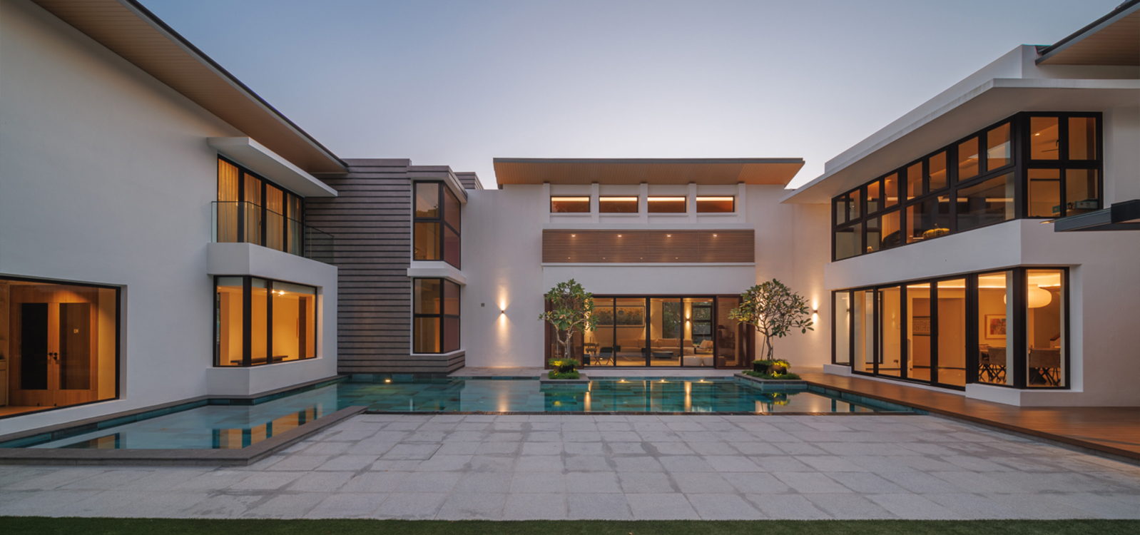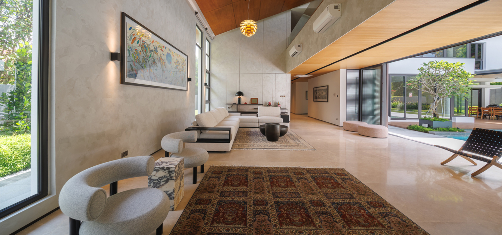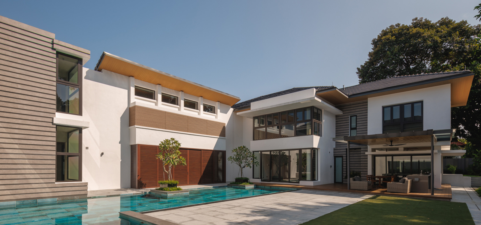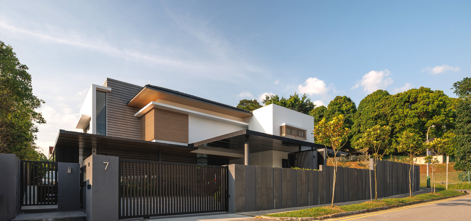 A Good Class Bungalow along Dunearn Close is a proposal for a multi-generation family. The design of the house is a U-shape layout with the common space occupying the 1st storey, and the 2nd storey with 2 wings – each for a family. The design follows a modern tropical approach with deep eaves and façade louvres provide sun shading and privacy for the occupants.