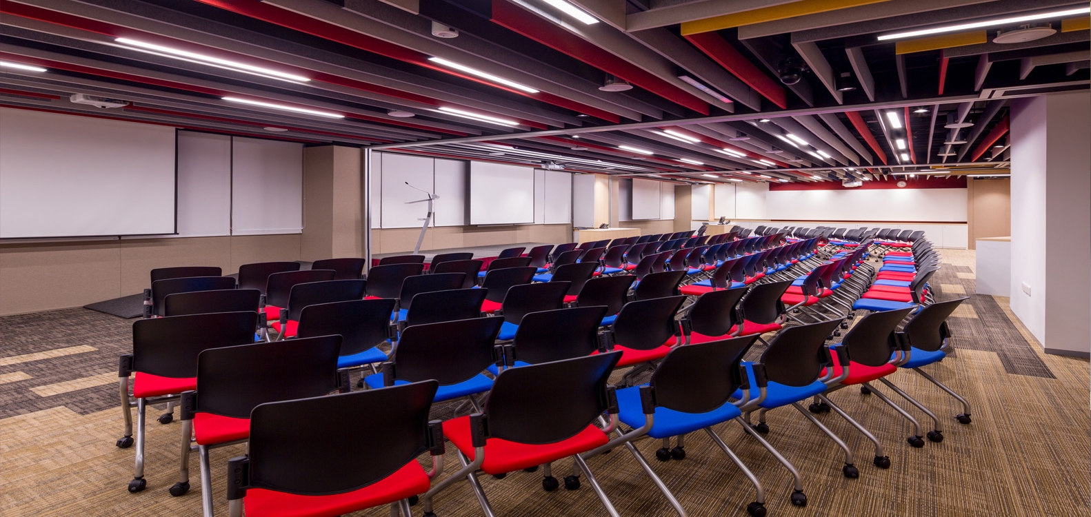 The auditorium at 18th storey is the biggest event space. The size of the auditorium can be configured per the needs of the events with the use of operable walls on all sides. It could be divided into 3 classrooms or 1 big auditorium. The auditorium space can be further enlarged by opening up the walls along the corridor, hence making the corridor part of the auditorium. The use of operable walls is also extended to all classrooms such that the size of classroom can adapt according to the class size.